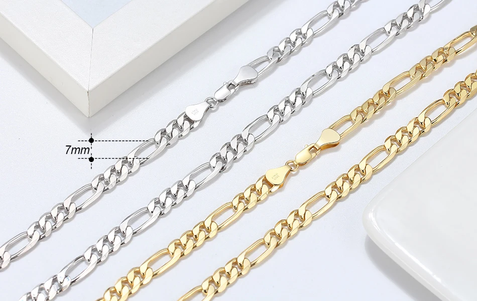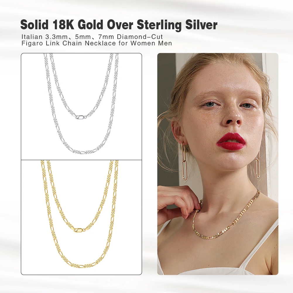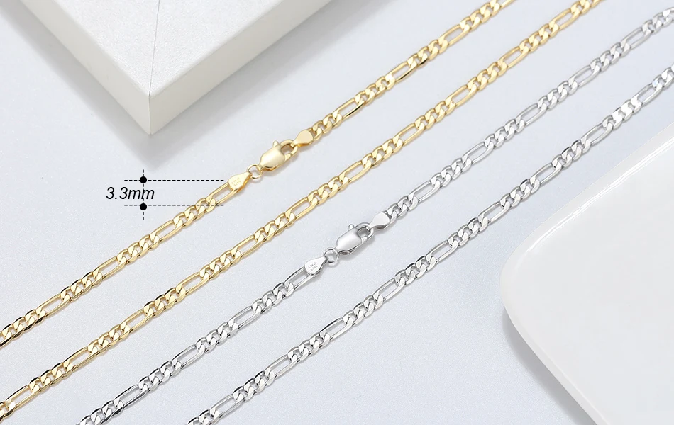 ORSA JÓIAS Trendy Homens Mulher Figaro Cadeia Colar 3.3/5/7mm Diamante-Cut Figaro Cadeia 925 Prata Jóias Presente Do Partido OSC34